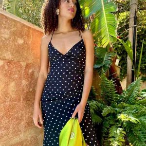 Bolso mini estilo pañuelo en satinado lima. Lleva mango en piel de vacuno verde.